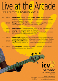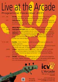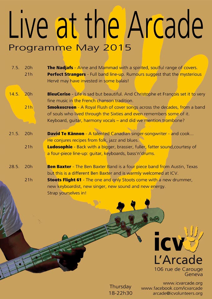 Etes-vous musicien et souhaitez jouer à l'Arcade? Envoyez-nous un e-mail (avec des liens concernant votre musique) à arcade [at] icvolunteers.org.